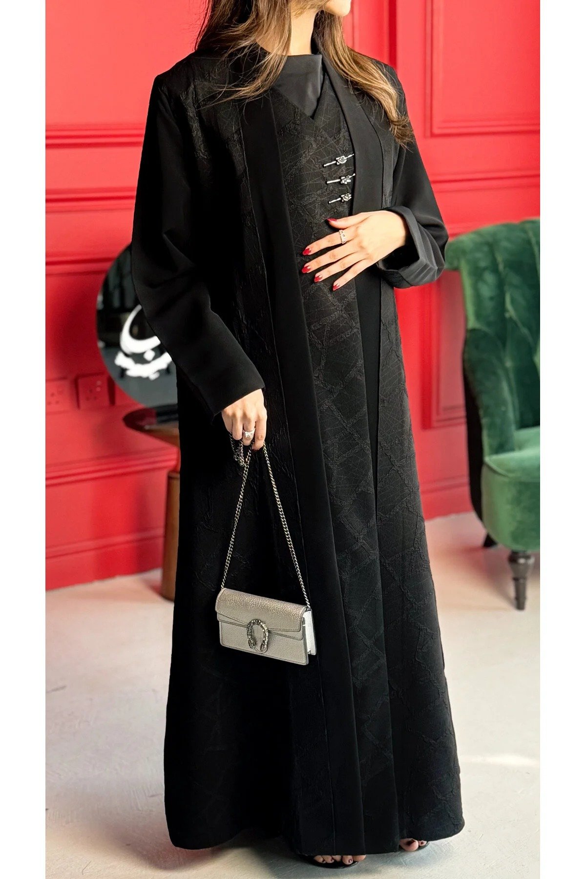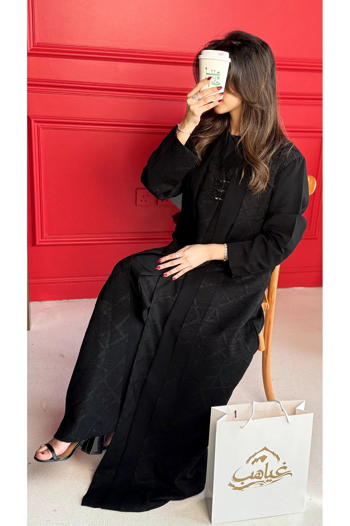 GEYAHEB عباية مميزة قماش جاكار اسود