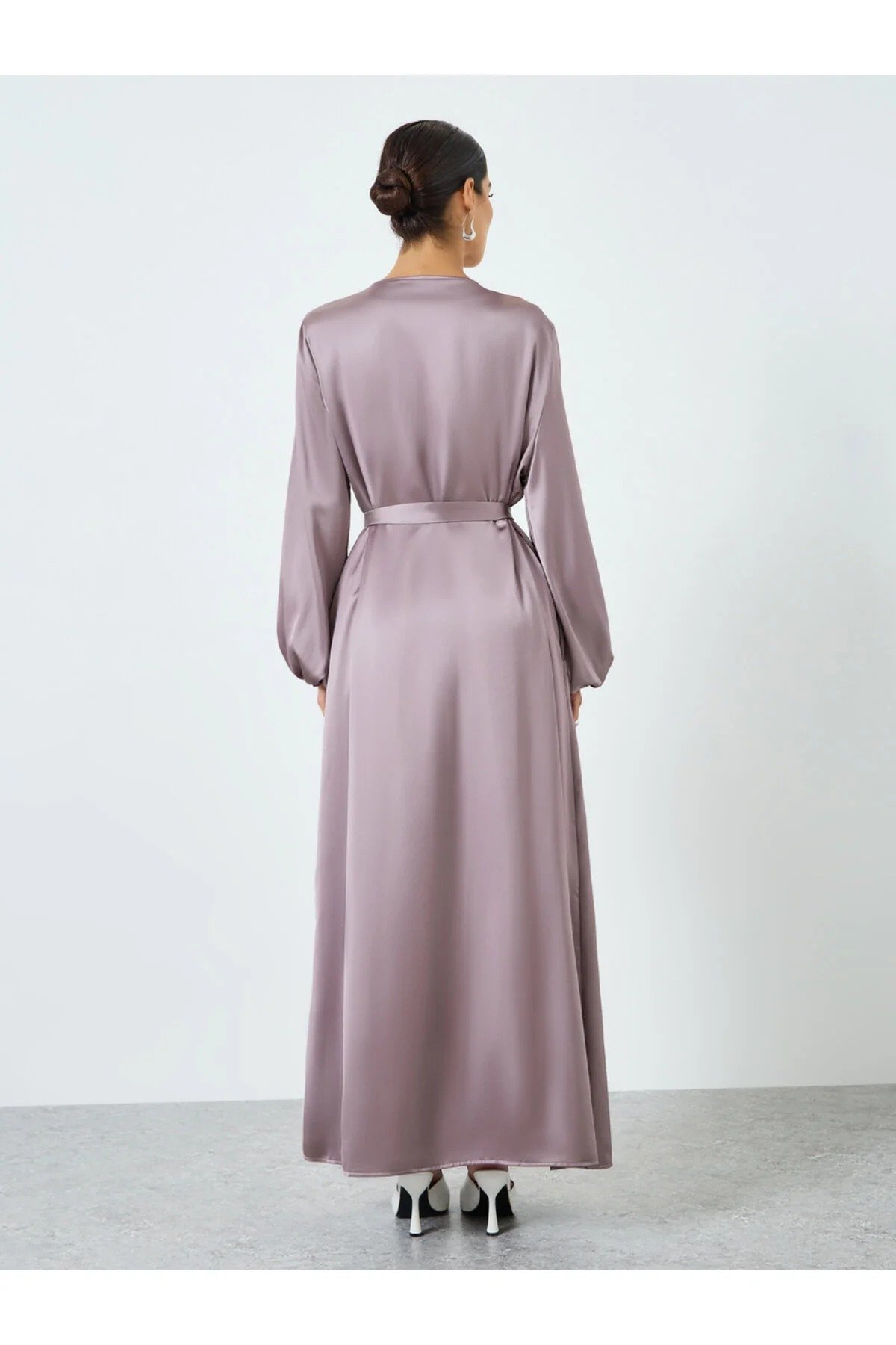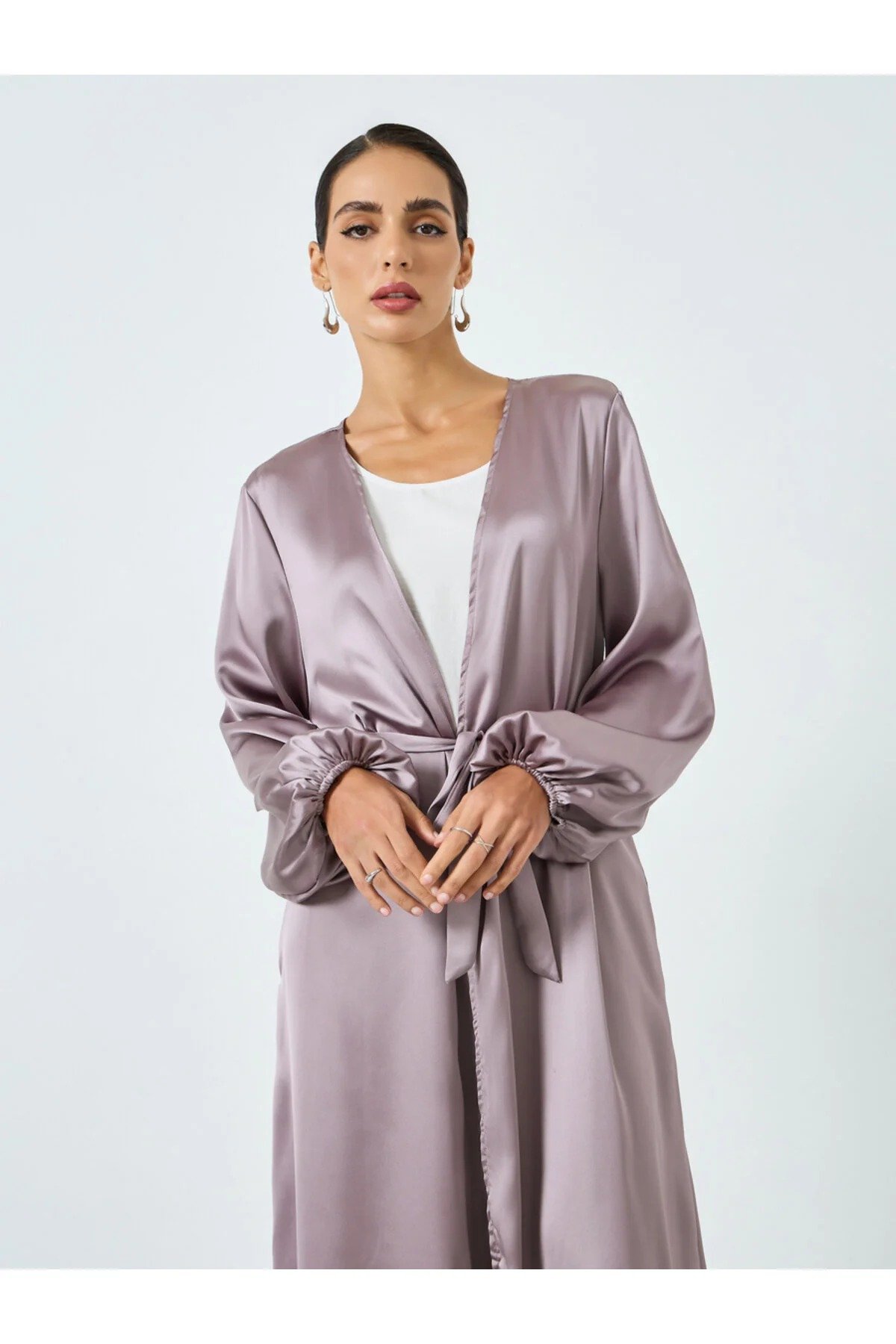 Take Two By Styli عباية نسائية بلون أرجواني سادة بأكمام طويلة